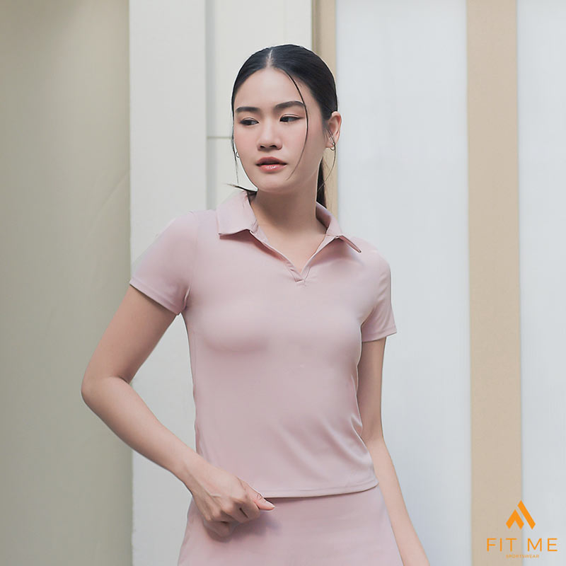 เสื้อโปโลแขนสั้น ทรงเข้ารูป (ไม่มีบราในตัว) เสื้อกีฬาคอปก เนื้อผ้านิ่ม ยืดได้เยอะ ใส่สบาย
